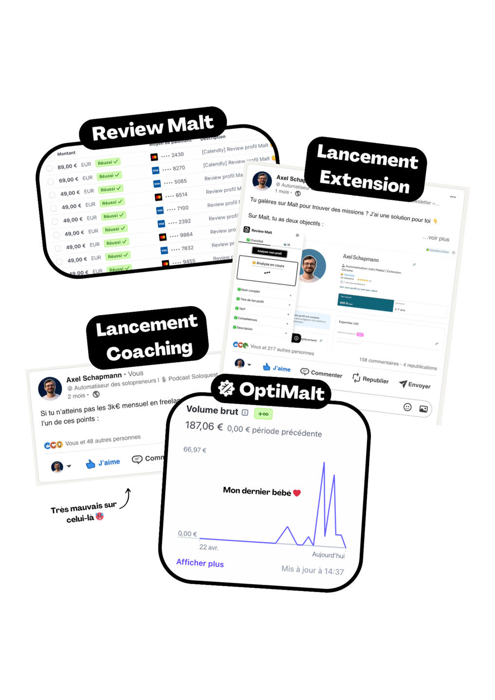 Alors certes, je ne suis pas (encore) devenu millionnaire avec ces offres, mais j’ai clairement plus appris en construisant et tentant de les vendre, que si tout ça était resté dans ma tête.